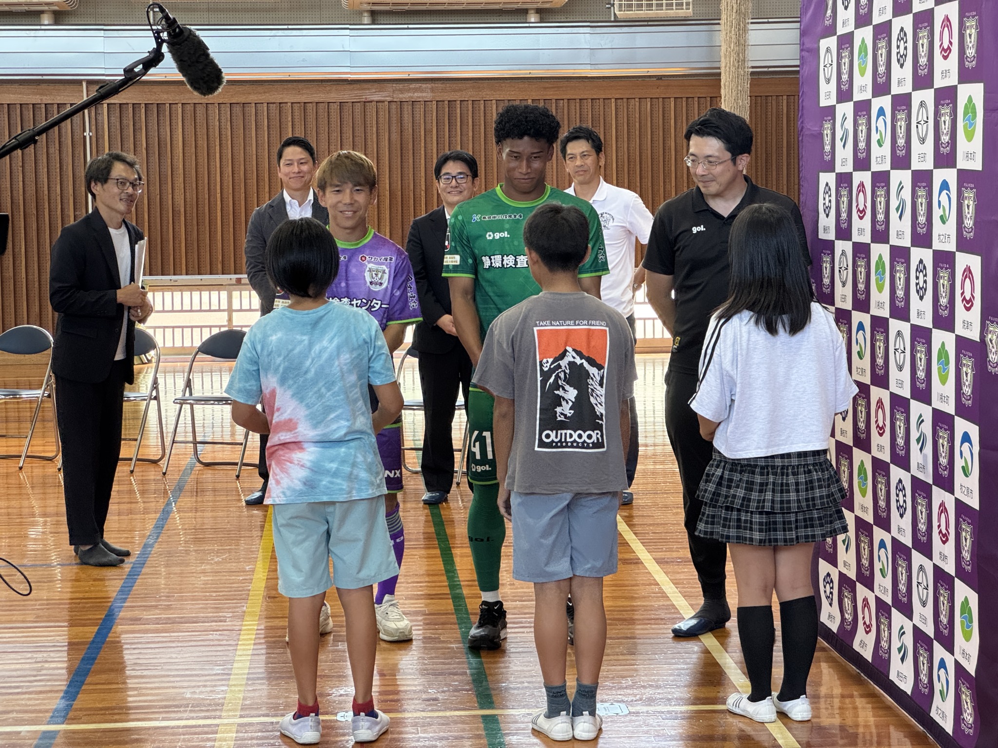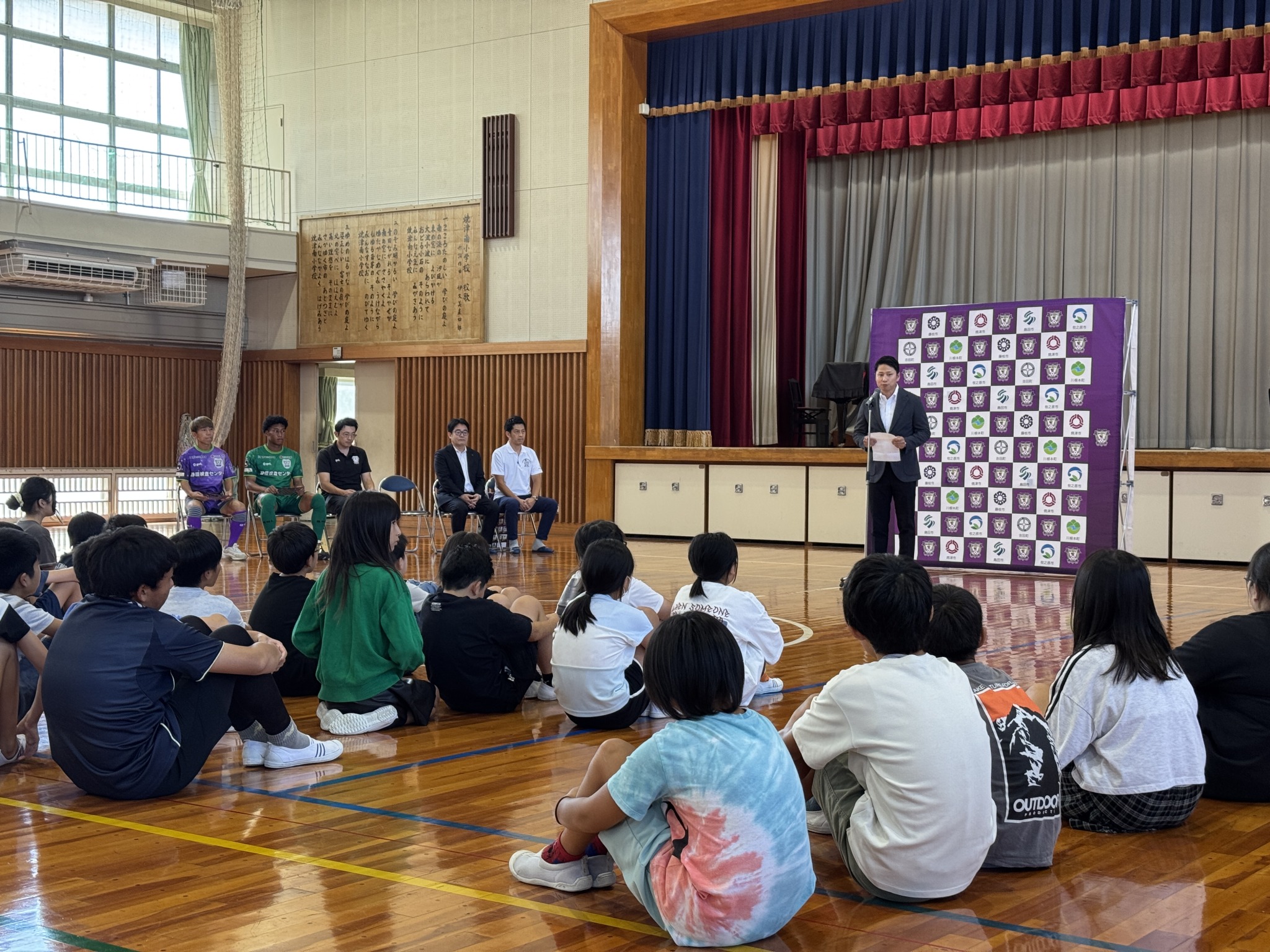 最後には、児童から元気いっぱい藤枝MYFCのチャント合唱で選手にエールでお返しを!みんなで一生懸命準備してくれたことに感動しました。
