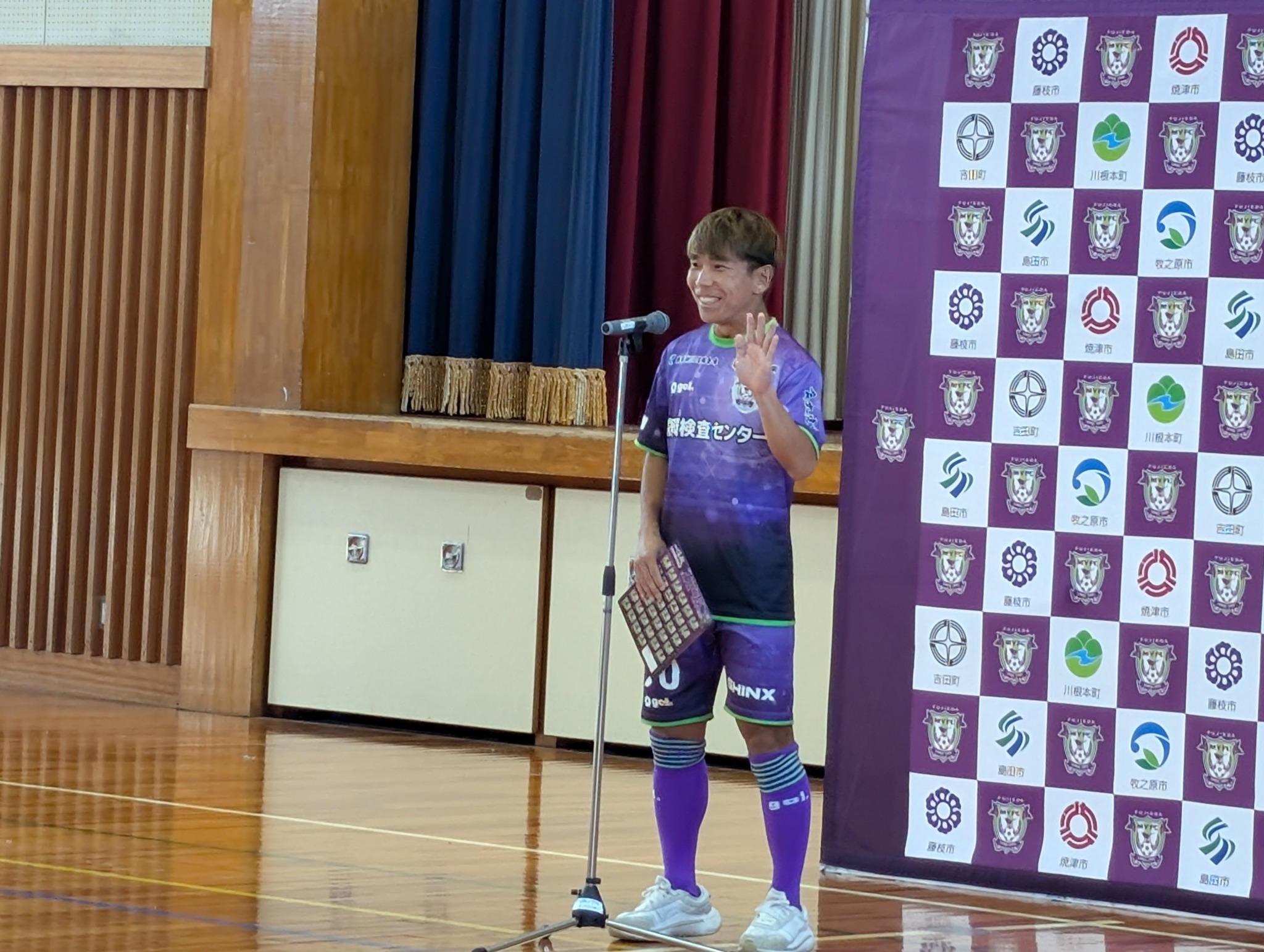 エールを贈る藤枝MYFC金子選手