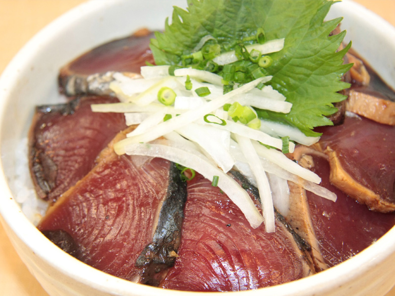 うなぎの代わりに鰹で仕立てた「鰹まぶし」。解凍後、たれと一緒にご飯に盛り付け、一杯目はかつお漬け丼として、二杯目はだしをそそぎ、さらさらとかき込むだし茶漬けとして、二度お楽しみいただけます。 -